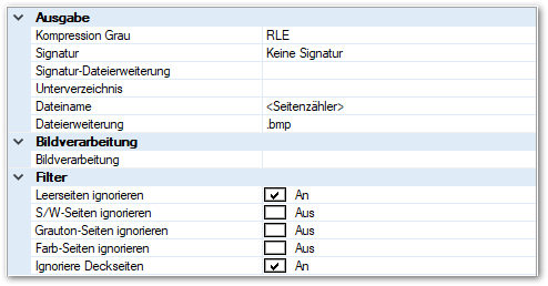 Sie können die für dieses Ausgabeformat voreingestellte und standardisierte Dateiendung (.bmp) nach eigenen Wünschen abändern. Bitte beachten Sie, dass dabei unter Umständen die Zuordnung dieses Dateityps zu entsprechenden Funktionen des Betriebssystems verloren geht.