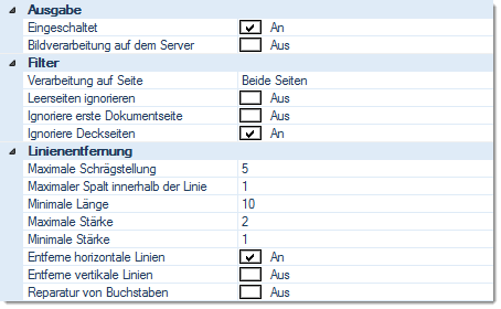 Wenn An eingestellt ist, wird durch Linienentfernung beeinträchtigter Text wiederhergestellt.