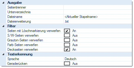 Während des TXT-Exports wird eine Volltexterkennung durchgeführt. Dieser Menüpunkt legt die Erkennungssprache hierfür fest.