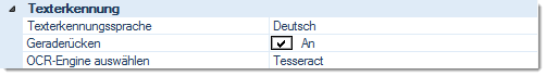 Hier kann zwischen dem Open-Source Produkt Tesseract und einer alternativen OCR-Engine ausgewählt werden.