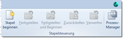 Über diese Schaltfläche öffnen Sie die Statusanzeige des Prozessmanagers. Hier können Sie sich einen Überblick darüber verschaffen, welche und wie viele Stapel an den Prozessmanager übergeben wurden und in welchem Bearbeitungsstatus sich diese befinden.