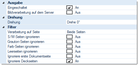Beiden Seiten Vorderseite RückseiteBitte beachten Sie: Die Optionen Vorderseite und Rückseite funktionieren nur bei Scannern, die über eine entsprechende Funktion zur Seitenunterscheidung verfügen und diese Information auch per TWAIN-Treiber übermitteln.