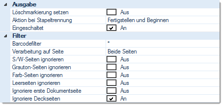 Berücksichtigt werden dabei sämtliche von dieser Vorlage erkannten Barcodes. Der oder die, eine Stapeltrennung auslösenden Barcode-Werte können über den Barcodefilter (siehe weiter unten) eingegrenzt werden.