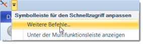 Um die Schnellzugriffsleiste mit den gewünschten Befehlen zu belegen, betätigen Sie bitte die Schaltfläche Weitere Befehle…