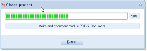 Resulting behaviour: The batch to be finalized is not placed in the process manager queue. Instead, the finalisation will happen within the current CROSSCAP session. During finalization, you will see the following progress bar:
