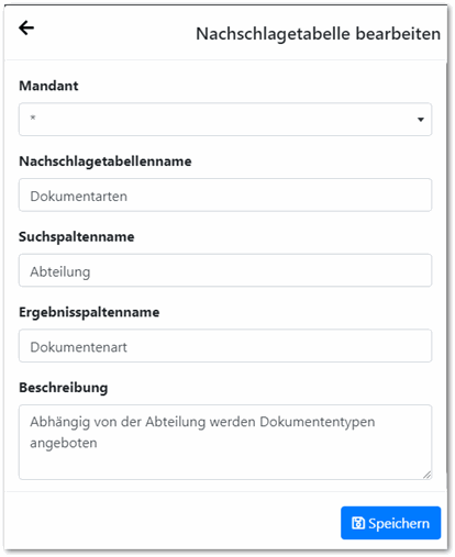 Hier können die bei der Erstellung einer Nachschlagetabelle (über die Kopfzeile, siehe weiter unten) gemachten Angaben nachträglich verändert werden.