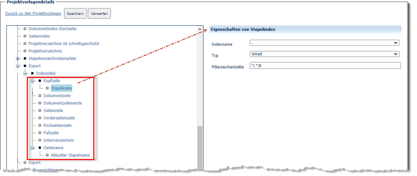 Um z. B. ein Indexfeld auszuwählen, welches Sie im Vorfeld als Stapelindex definiert haben, gehen Sie wie folgt vor: