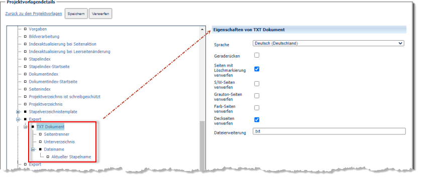 Während des Exports in eine TXT-Datei wird eine Volltexterkennung durchgeführt. Die Texterkennungssprache sollte an die Sprache der Dokumenteninhalte angepasst werden, um eine möglichst gute Erkennungsrate zu erzielen und die Erkennung von länderspezifischen Zeichen (z.B. Umlauten) zu ermöglichen. Wählen Sie die passende Erkennungssprache aus der Drop-Down Liste.