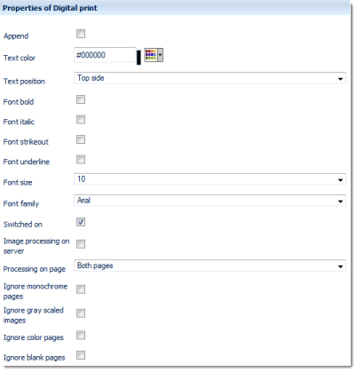 Whereas an Endorser leaves a physical mark on pages passing through a scanner, Digital print will only modify scanned images, i.e. image data.